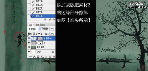 7、回到素材1圖層,添加圖層蒙版用黑色畫筆擦掉多余部分。