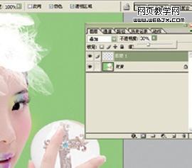 | 28、新建圖層,將前景色設置成黃色,在水晶球上畫出不規(guī)則黃點,再將前景色設置成白色,同樣畫出不規(guī)則白點,效果如圖所示。 |