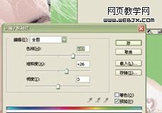 | 11、復制選區(qū)圖層,執(zhí)行色相/ 飽和度,參數(shù)如下:色相+47、飽和度+26。 |