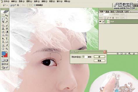 | 10、合并所有圖層,在人物眼皮上做選區(qū),羽化半徑為20象素。 |
