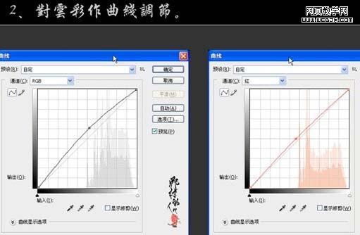 2、按ctrl + m對云彩調整曲線,參數及效果如下圖。