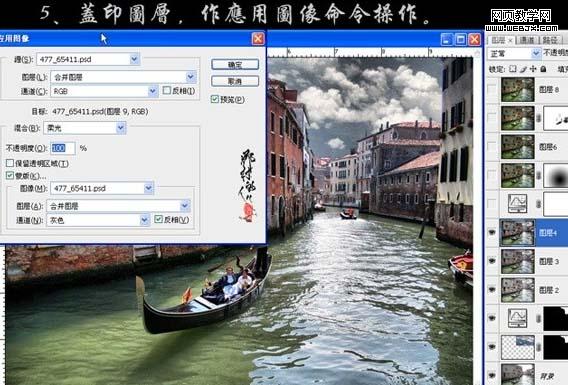 8、新建一個圖層,蓋印圖層,執行:圖像 > 應用圖像,參數設置如下圖。