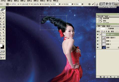 11、復制選區內的頭發,并用變形工具適當調整好位置,效果如圖。