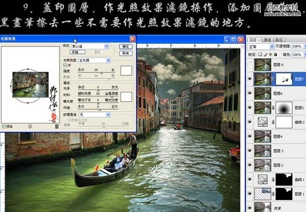9、新建一個(gè)圖層,蓋印圖層,執(zhí)行:濾鏡 > 渲染 > 光照效果,參數(shù)設(shè)置如下圖,確定后加上圖層蒙版用黑色畫筆擦去一些不需要操作的部位。
