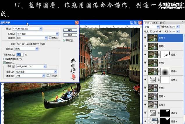 11、新建一個(gè)圖層,蓋印圖層,再執(zhí)行:圖像 > 應(yīng)用圖像,參數(shù)設(shè)置如下圖,確定后完成最終效果。
