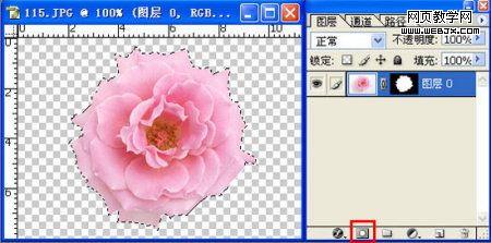3、在圖層上建立選擇區后,單擊圖層面板上的“添加圖層蒙板”,直接在圖層上建立一個圖層蒙板。
