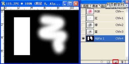 2、在通道面板上單擊“建立新通道”按鈕,新建一個alpha通道,當我們用選擇工具或繪圖工具對些通道進行編輯,就會在通道上產生一個通道蒙板,其白色區域為選擇區。