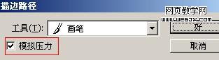 返回選擇鋼筆工具,按畫布上按右鍵選擇描邊路徑,工具:畫筆,勾選模擬壓力