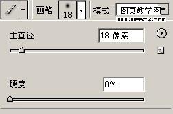 返回畫筆工具,設置大小為18px,硬度:0%,還有設置前景色為白色,按d鍵,再按x鍵