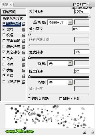 分別調整形狀動態、散布、其他動態,記得勾選平滑