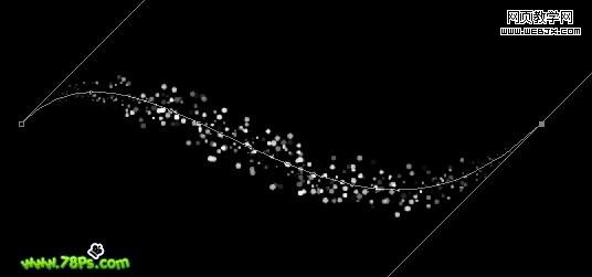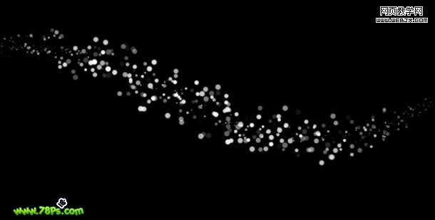 新建一個圖層在所有圖層上面,選擇我們剛才設置的畫筆(前景色為白色),在新建的圖層上畫出透明度、大小不同的點