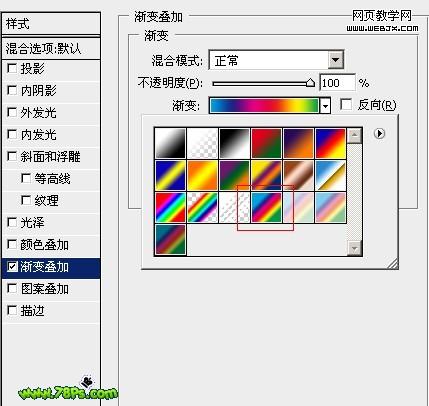 添加漸變疊加,執行圖層--圖層樣式--漸變疊加,載入“色譜漸變”,選中如圖中的漸變顏色