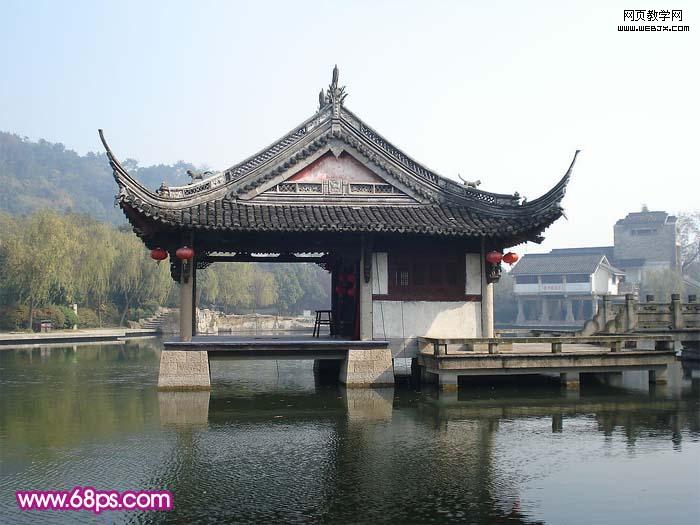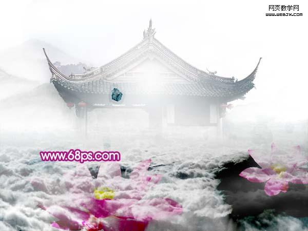 <圖7> 5、打開圖8所示的亭子素材,拖進來,適當調整好大小和位置,加上圖層蒙版用黑色畫筆稍微把邊角部分擦掉,效果如圖9。