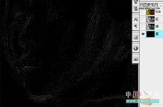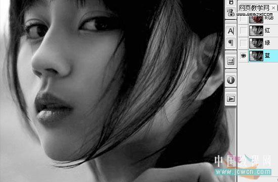 2、既然藍通道沒什么信息,只好用綠通道代替藍通道,快捷鍵 "ctrl+2" 使綠通道為編輯狀態 (cs4 中,快捷鍵是 "ctrl+4".當然,也可以用鼠標左鍵點擊綠通道)"ctrl+a" 全選 , "ctrl+c" 復制,然后 "ctrl+3" 使藍通道為編輯狀態 , "ctrl+v" 把綠通道的信息復制粘貼到藍通道里。