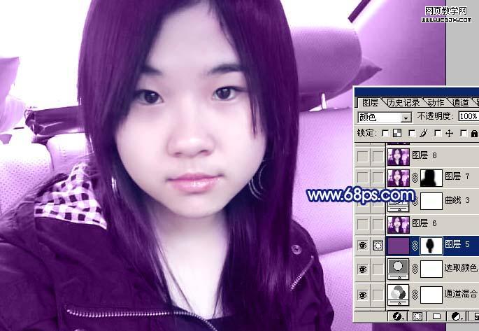 <圖14>8、新建一個圖層,填充顏色:#733987,然后把圖層混合模式改為“顏色”,加上圖層蒙版用黑色畫筆把人物部分擦出來,效果如下圖。