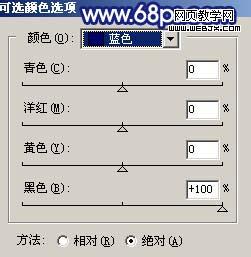 7、創建可選顏色調整圖層,對藍色進行調整,參數設置如圖13,效果如圖14。