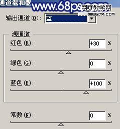 <圖10>6、創建通道混合器調整圖層,對藍色進行調整,參數設置如圖11,效果如圖12。