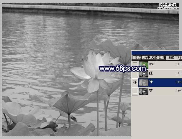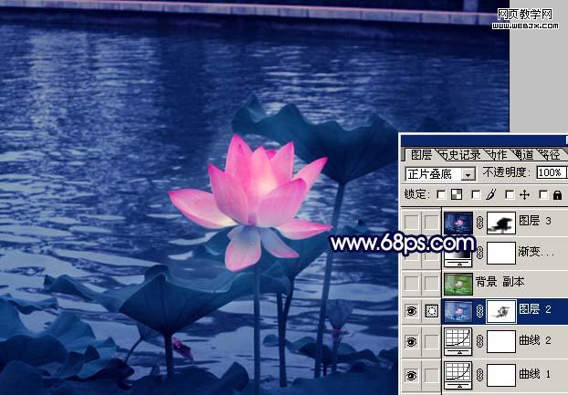 <圖12> 6、新建一個圖層,按ctrl + alt + shift + e 蓋印圖層,把圖層混合模式改為“正片疊底”,加上圖層蒙版,用黑色畫筆把荷花及部分荷葉擦出來,如圖13。