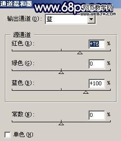 <圖17> 10、創建通道混合器調整圖層,對藍色進行調整,參數設置如圖18,效果如圖19。