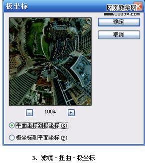 3、執行:濾鏡 > 扭曲 > 極坐標,選擇“平面坐標到極坐標”。