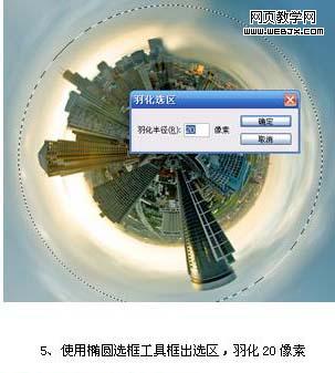 5、選用橢圓選框工具框出選區,按ctrl + alt + d 羽化20像素。