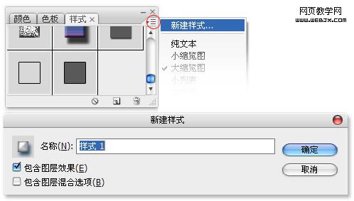 打開樣式面板的下拉菜單,選擇“新建樣式”,可以儲存成“樣式”,這樣在其他的制作中可以再次使用此樣式。