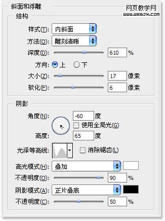 添加圖層樣式,“斜面與浮雕”的選項。