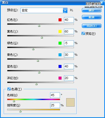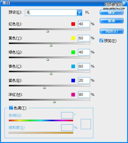 步驟 5、按下 ctrl + shift + alt + b,打開黑白調整窗口并按下圖設置。