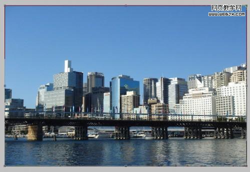 步驟 3、將城市素材復制到畫布,自由變換調整到適合畫布的大小。