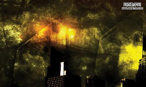步驟 10、復制多個大廈層,調整不同的位置、大小和不透明度得到如下效果。