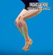 4:在美女的腿上加點高光,用鋼筆勾勒出高光的位置,填充白色---高斯模糊---降低透明度,也可以填充50%灰的新圖層---模式柔光---用減淡工具畫出,條條大道通羅馬,能輕松到達目的地就可以: