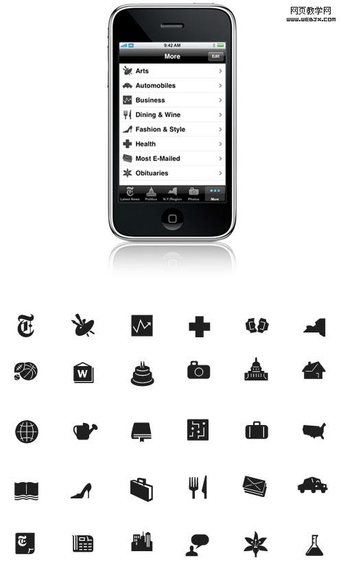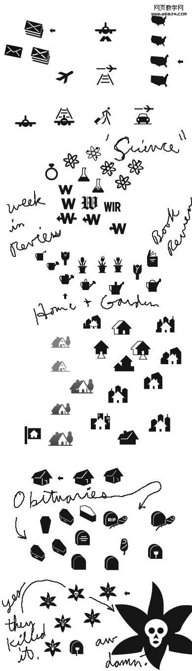 設計師 felix 為iphone程序nytimes創作了整組圖標。這些單形的圖標看似簡單,但實際上在29 x 29尺寸下完成這個工作還是比較有挑戰性的。從圖中可以看出設計師在整個過程當中嘗試了相當多個版本,在各種條件限制下最終完成了整套作品。