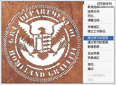 首先載入紋飾部分的選區(qū),對(duì)“背景”圖層執(zhí)行“通過(guò)拷貝的圖層”命令。