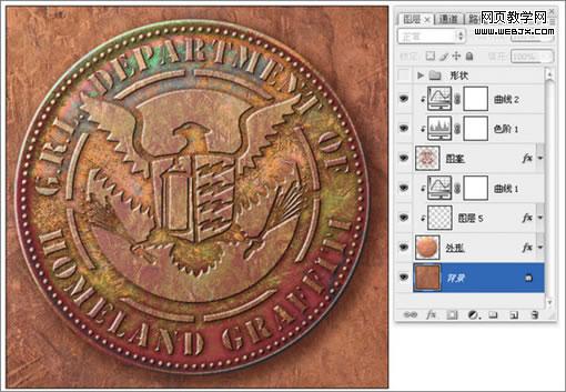 此時(shí)“圖案”圖層部分已經(jīng)有了很好的立體感。