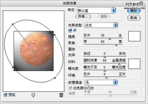 執(zhí)行“光照效果”濾鏡,為硬幣添加光源。