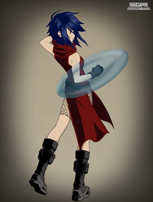 用橢圓工具在忍著美少女腳部做一個陰影。新建立一個圖層,填充為黑色,然后高斯模糊設置為5-10之間的半徑,圖層不透明度調到 60%。
