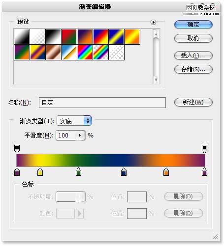 4、打開“漸變編輯器”,按圖中編輯漸變色。