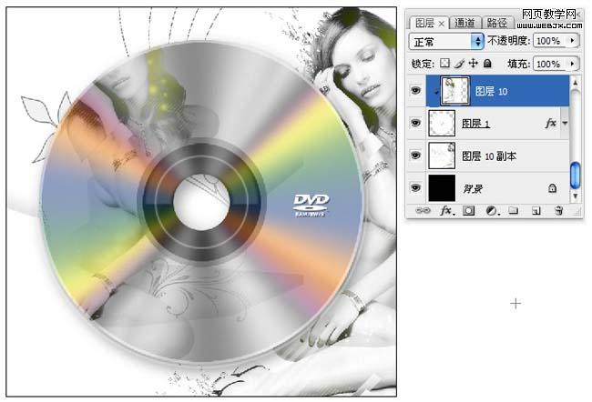| 2、在光盤形狀圖層的上方新建圖層,垂直方向拉出漸變。 |