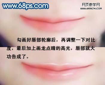 9、勾畫好唇部輪廓后,再調(diào)整一下對比度,最后加上高光,唇部就大功告成。