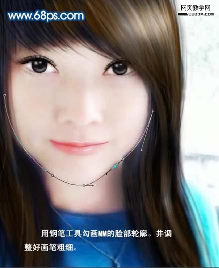 10、用鋼筆工具勾畫人物臉部輪廓,并調(diào)整好畫筆粗細。