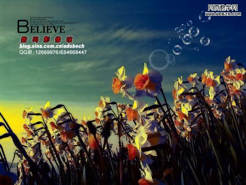 7、新建一個圖層蓋印圖層,圖層混合模式改為“變暗”。8、添加文字了,水泡,完成最終效果。