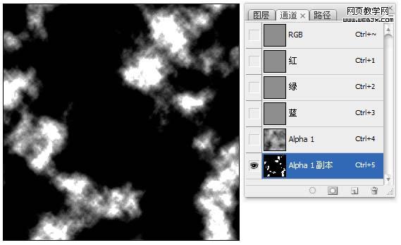 | 1、打開下圖所示的墻壁素材,點通道面板,新建alpha1通道,執行“云彩”濾鏡。 |