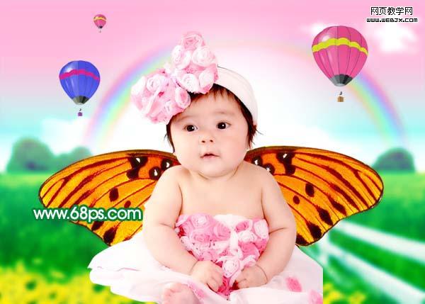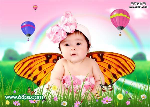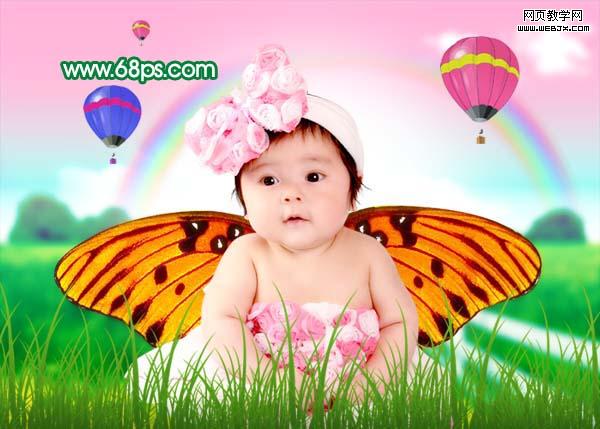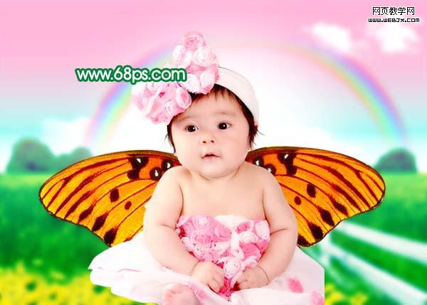 13、打開下圖所示的蝴蝶素材,用鋼筆工具摳出來放到人物圖層的下面,適當調整好角度和大小。再稍微調亮一點,效果如圖26。