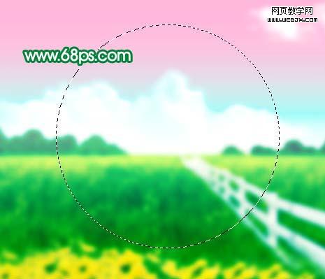 5、新建一個圖層,用橢圓選框工具拉一個較大的橢圓選區如圖11,按ctrl + alt + d 羽化,數值為55,確定后填充白色,取消選區后效果如圖12。