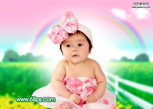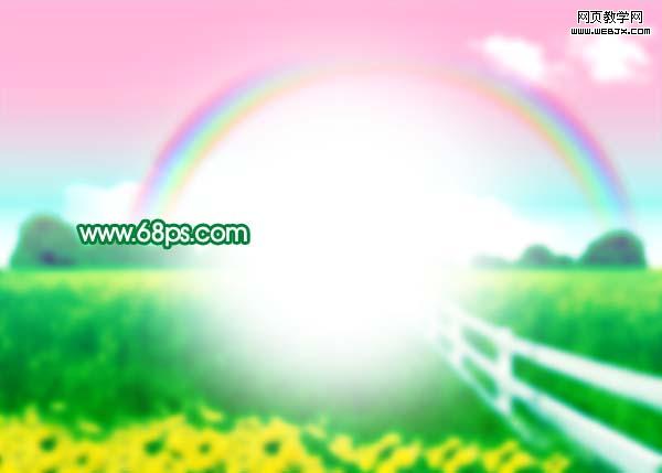 9、把彩虹拖進來,適當調整大小,加上圖層蒙版,用黑色畫筆擦掉不需要的部分,如圖18。