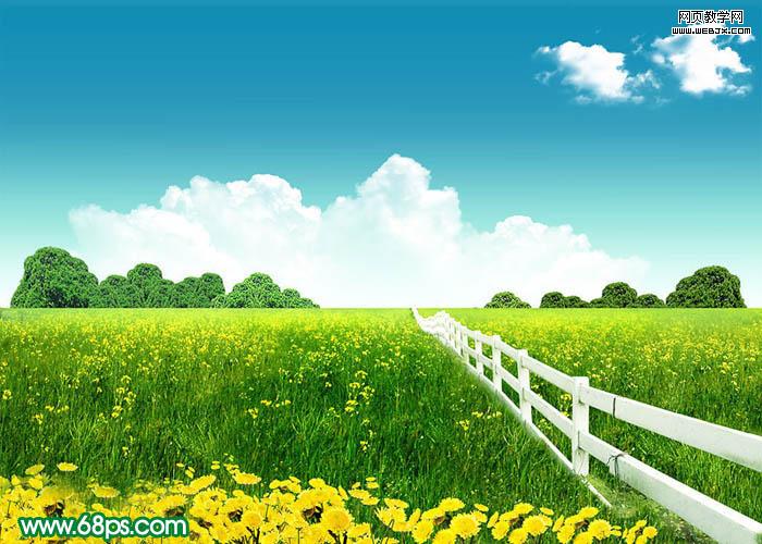 15、打開下圖所示的小草素材,摳出來后放到圖層的下面,適當調整好顏色,效果如圖29。