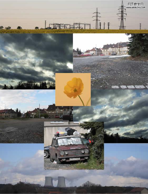 創(chuàng)建新文檔,打開幾個背景圖片,調(diào)整到合適位置。