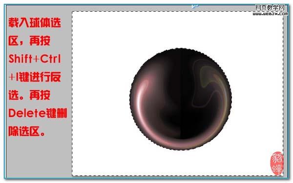 8、載入球體選區,再按shift + ctrl + i 反相,按delete刪除。