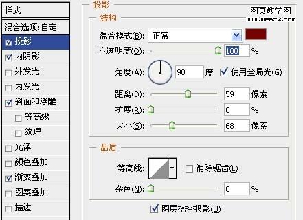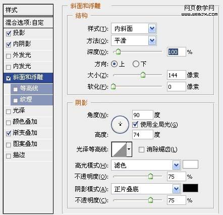 4、圖層樣式參數設置如下圖。