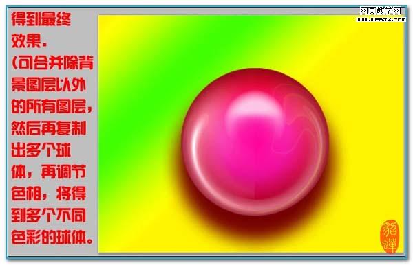 10、合并除背景以外的所有圖層,然后再復制出多個,適當調整顏色,將得到多個不同色彩的球體。完成最終效果。